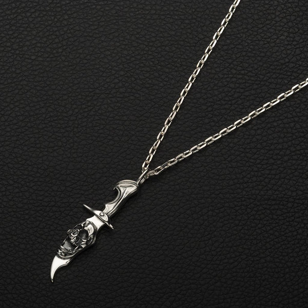 Sterling Silver Skull Relief Dagger Pendant Necklace Sterling Silver Skull Relief Dagger Pendant Necklace